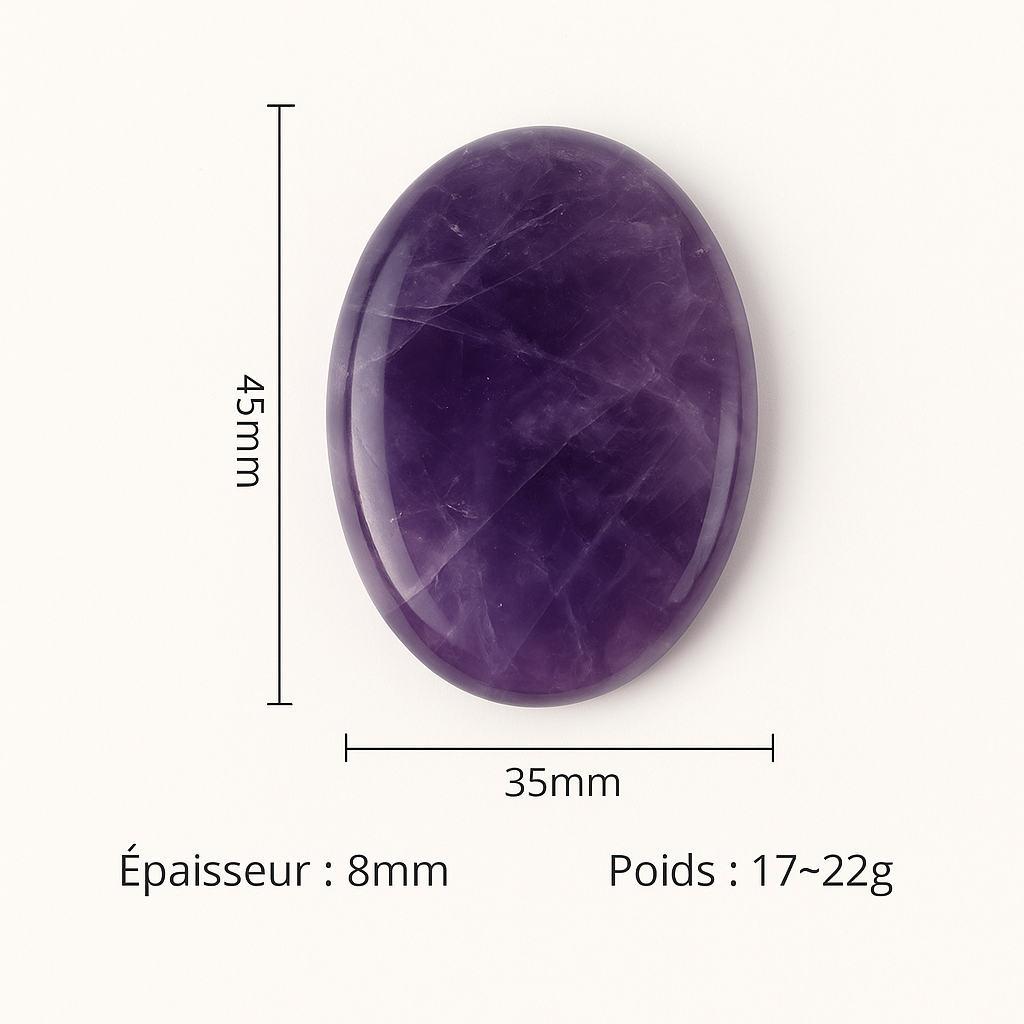 - Chaque pierre est polie à la main : teinte du lilas pâle au violet profond